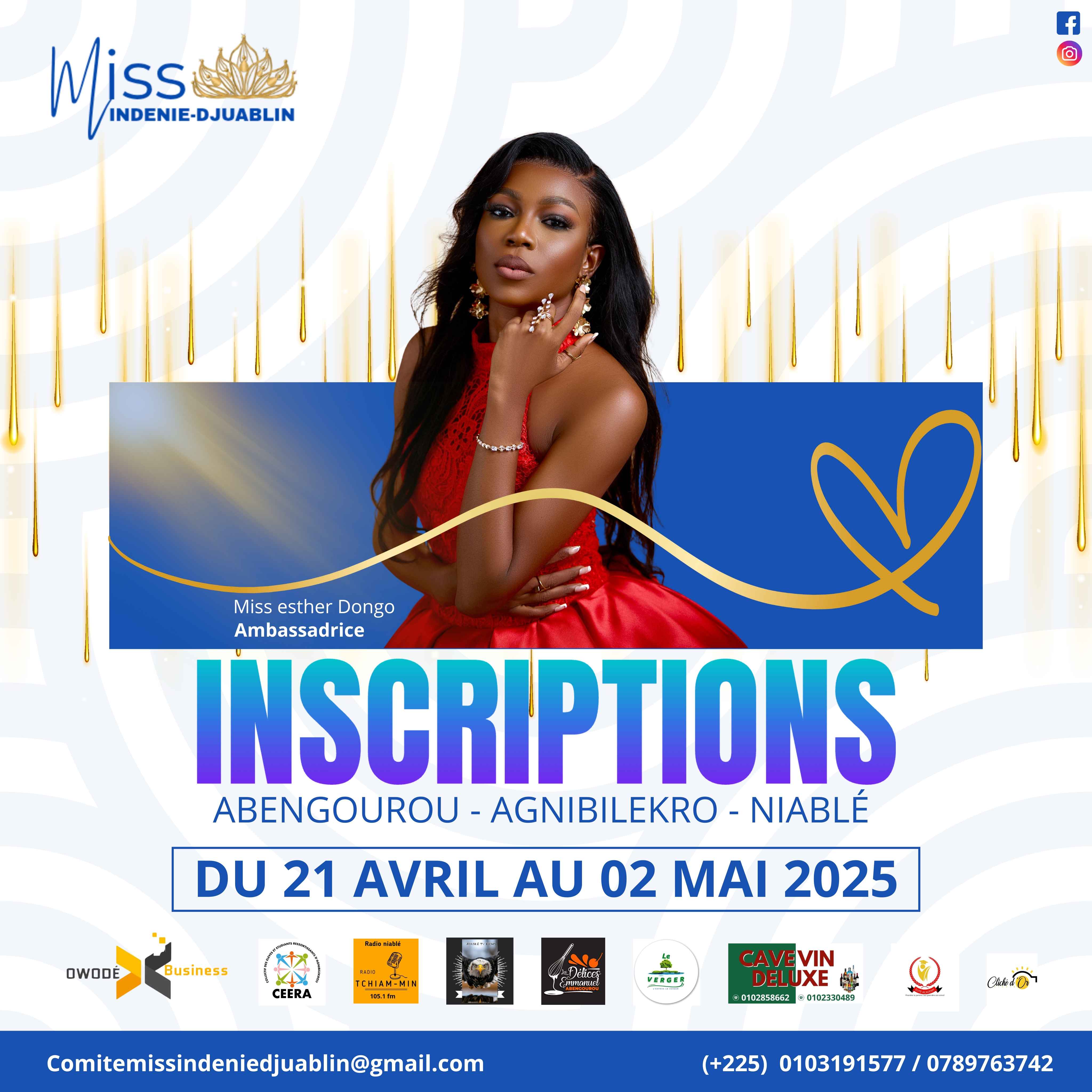 Votre candidature pour Miss Indénié-Djuablin 2025 a été enregistrée avec succès.